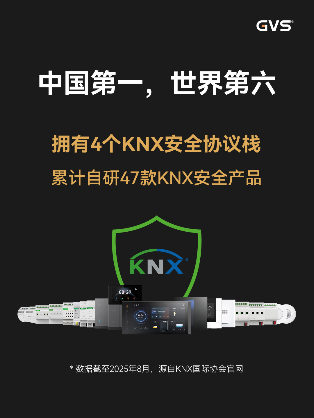 目前,GVS的多款產(chǎn)品已率先滿足新標(biāo)準(zhǔn)要求。比如公司自研認(rèn)證了7個KNX核心協(xié)議棧,推出47款KNX安全產(chǎn)品,位居中國第一,全球第六(排位數(shù)據(jù)截至2025年4月,來源KNX國際協(xié)會),支持AES-128 CCM高等級加密標(biāo)準(zhǔn),可為建筑提供數(shù)據(jù)安全和IP安全雙重保護(hù)。