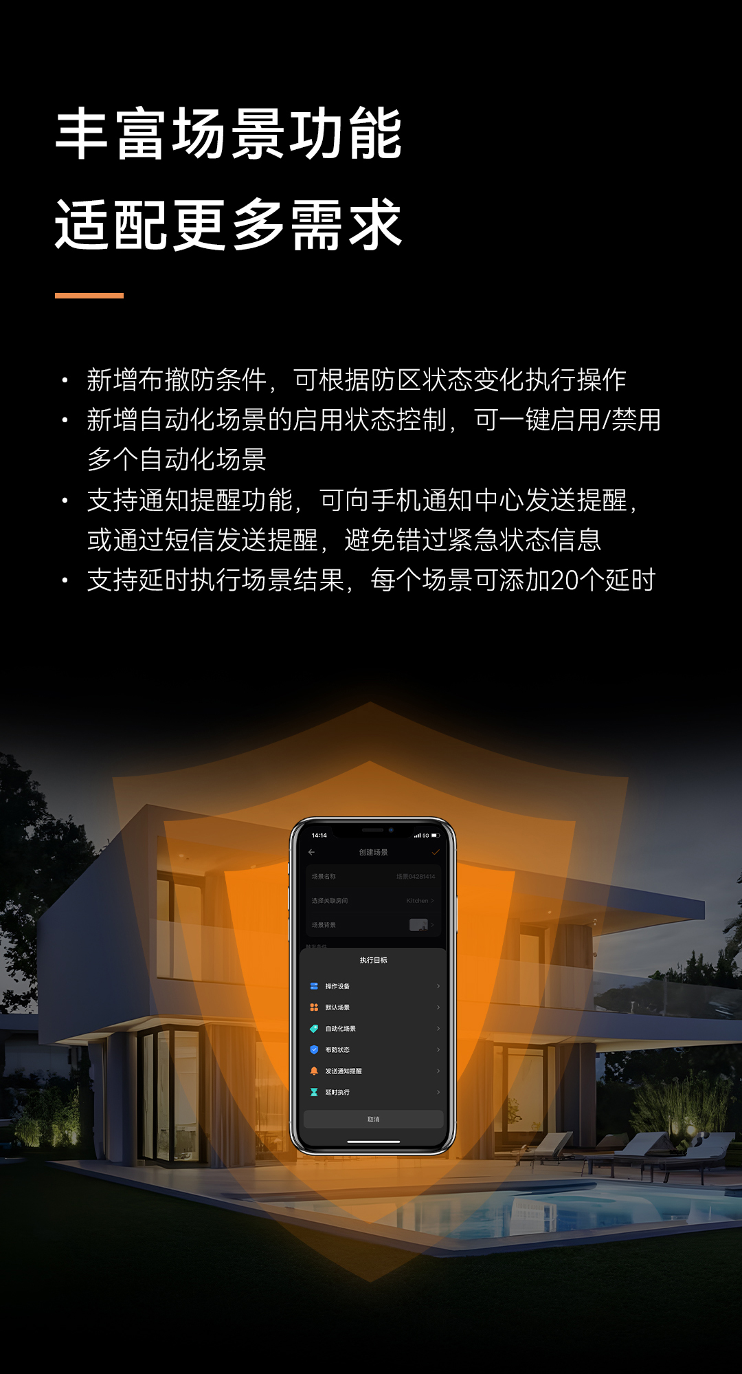 支持通過(guò)場(chǎng)景調(diào)用布防撤防操作,簡(jiǎn)化流程