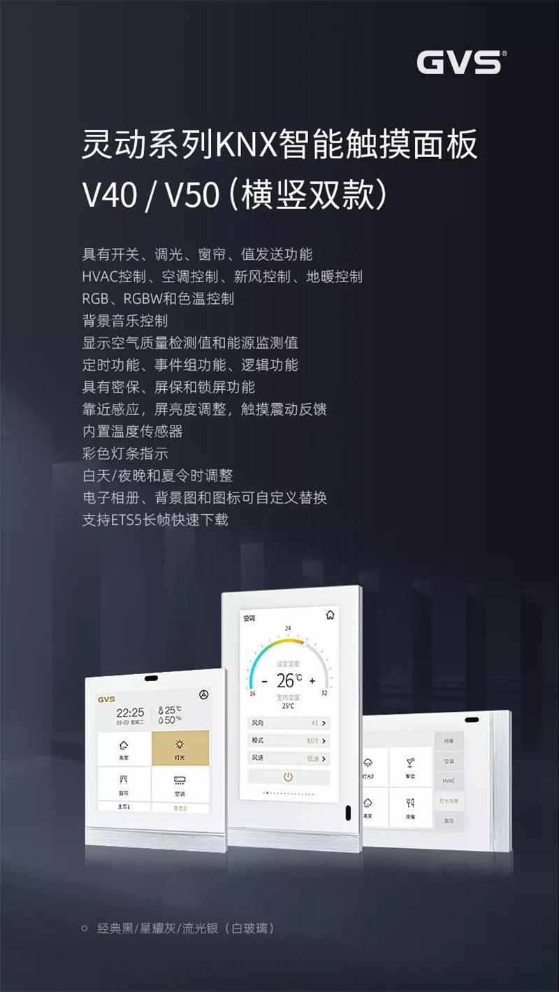 ▲GVS靈動系列KNX智能觸摸面板V50(經(jīng)典黑)