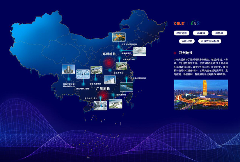 目前,GVSK-BUS智能照明控制系統(tǒng)先后賦能廣州、鄭州、濟(jì)南、梅州、貴陽、佛山等各大城市的軌道交通項(xiàng)目,亦憑廣州地鐵21號(hào)線提名2020 KNX協(xié)會(huì)「公共工程獎(jiǎng)」。