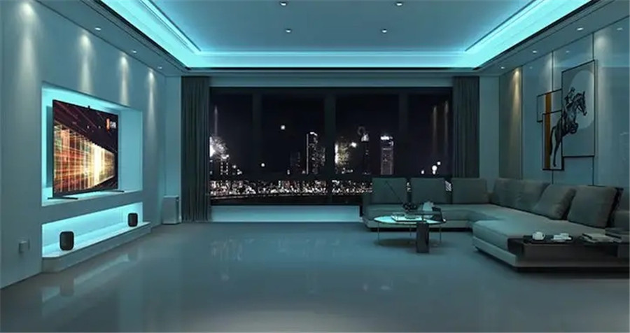 如果想在家欣賞大片的話,則開(kāi)啟“觀影模式”,那么背景燈自動(dòng)調(diào)節(jié)到觀影氛圍,客廳其他燈光慢慢暗下來(lái),打造恰到好處的燈光氛圍,身臨其境的觀影體驗(yàn),電視自動(dòng)打開(kāi),開(kāi)始觀看影片。